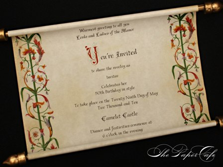 Perfect for those fancy dress parties for young and old. Surprise your guests with this classic parchment scroll rather than the standard invitation. The scrolls are available in gold or silver, and can be made to fit the postal cylinders are a DL (rectangle) box.