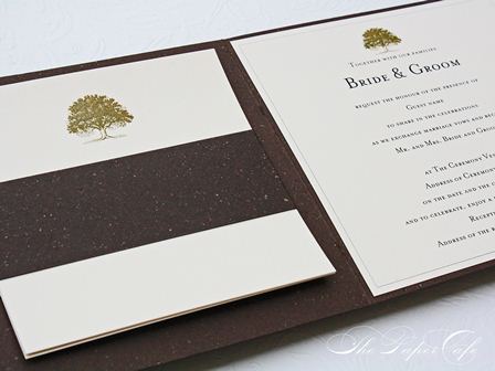 Even the groom may like this style, for something rustic and natural, this brown card is actually made from recycled beer lables. The centre panel is recycled stock also, and the cover is finished with a hesin style stiched ribbon. The inside information is neatly kept in place by our own style pockets.